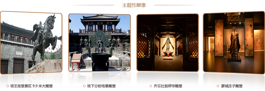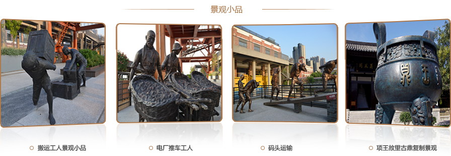 主題性雕塑是以歷史名人、風土人情、市政規劃、豐功偉績等主題性人物、事件為藝術造型,用可塑材料或可雕、可刻的硬質材料創造出一定空間的可視、可觸的藝術形象,借以反映人物、事件等方面的風采和形象。景觀雕塑、景觀小品則是通過文化元素的提煉、材質工藝的藝術化處理來美化環境、增加品位。