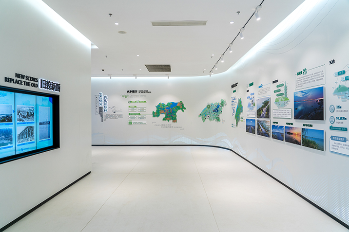 長三角生態綠色一體化發展示范區吳江區展示館項目位于蘇州市吳江區吳江大廈南廣場,項目面積1330平方米,為設計、采購、施工工程總承包。展示長三角一體化發展戰略提出以來,吳江地區的堅決貫徹與生動實踐,展現吳江地區結合地方實際的特色工作與顯著成績。本項目為改建項目,金螳螂文化團隊對場地進行考察,對現有設備進行拆除及合理應用,綜合考慮使用效果、投入成本、展陳更新等多方面要求。