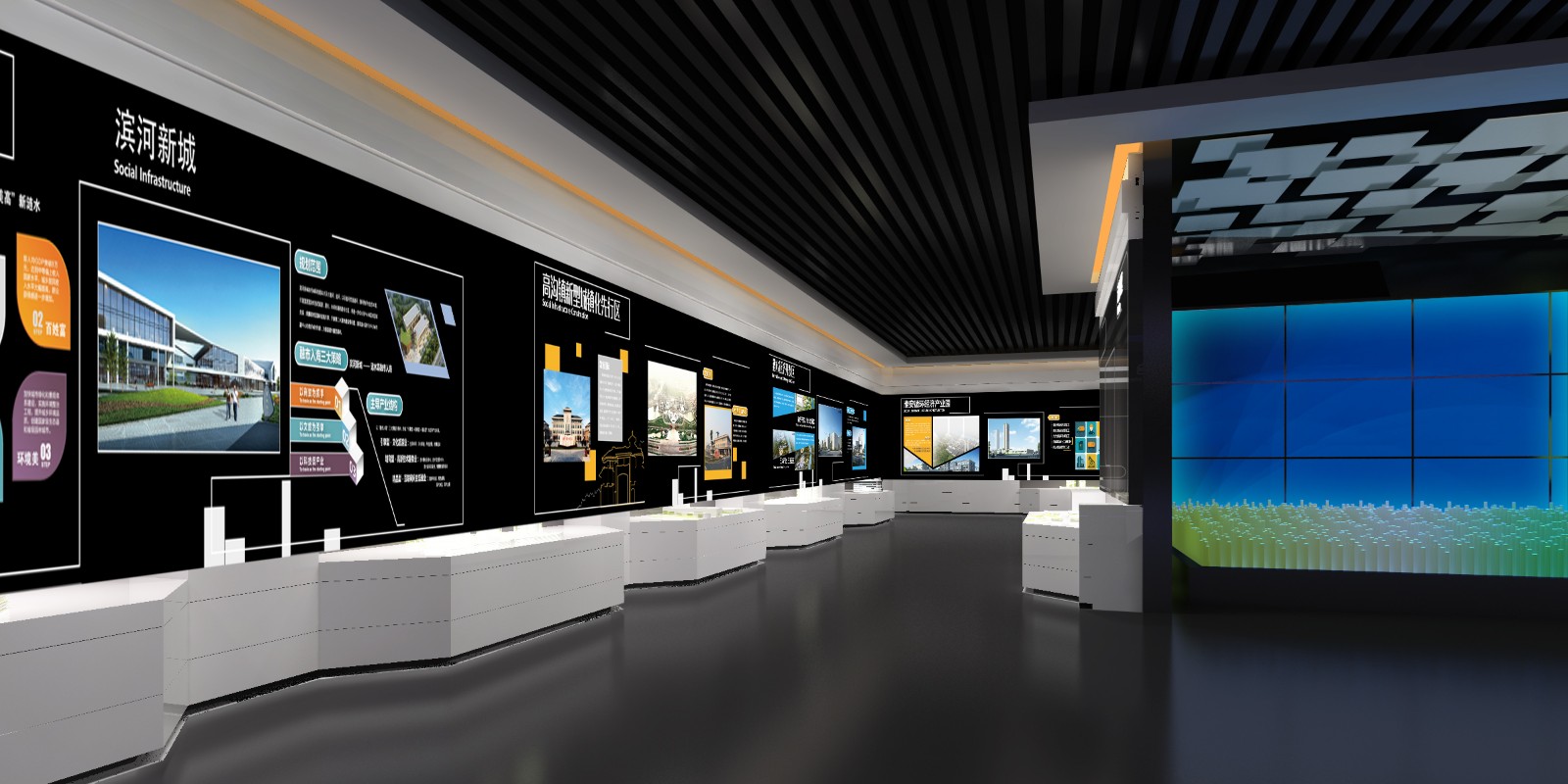 【序廳】 序廳形象墻,是一副中國傳統(tǒng)的水墨粉彩畫,流暢細膩的筆觸娓娓繪出五島湖、妙通塔周邊的絕美風景,用中國傳統(tǒng)繪畫形式勾勒出了現代漣水的獨特風情,妙通塔聳入云霄,五島湖波瀾不驚,與四周的現代化建筑渾然一體,富有強烈的感染力。