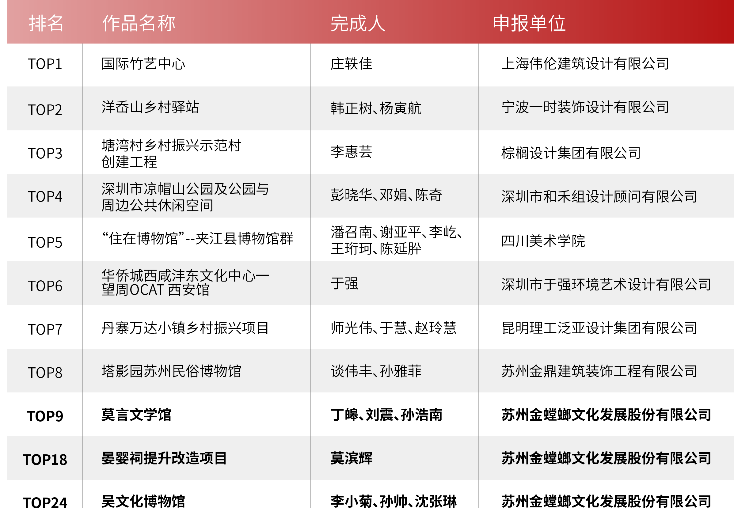 2022年鄉(xiāng)村公共文化空間 設(shè)計(jì)展示活動(dòng) 終評(píng)結(jié)果于近日公布 金螳螂文化再創(chuàng)佳績 獲評(píng) 最佳設(shè)計(jì)/運(yùn)營機(jī)構(gòu) 3 個(gè)項(xiàng)目獲得 最美鄉(xiāng)村公共文化空間 (空間設(shè)計(jì)類) 為深入貫徹落實(shí)習(xí)近平總書記關(guān)于文化和旅游工作重要論述精神,持續(xù)發(fā)現(xiàn)和推出一批“美”“好”“新”的鄉(xiāng)村公共文化空間,引領(lǐng)新時(shí)代鄉(xiāng)村公共文化空間構(gòu)建,推動(dòng)鄉(xiāng)村公共文化服務(wù)高質(zhì)量發(fā)展,助力鄉(xiāng)村振興。 文化和旅游部全國公共文化發(fā)展中心聯(lián)合中國群眾文化學(xué)會(huì)、中國建筑裝飾協(xié)會(huì)、成都市人民政府、新華網(wǎng)聯(lián)合主辦了2022年鄉(xiāng)村公共文化空間設(shè)計(jì)展示活動(dòng)。 經(jīng)組織專家組進(jìn)行獨(dú)立評(píng)審,按照公開、公平、公正原則,研究形成最美鄉(xiāng)村公共文化空間(創(chuàng)新案例類)TOP30,最美鄉(xiāng)村公共文化空間(空間設(shè)計(jì)類)TOP30,網(wǎng)絡(luò)人氣項(xiàng)目TOP10,最佳設(shè)計(jì)/運(yùn)營機(jī)構(gòu)TOP10,優(yōu)秀組織單位等名單。 以“我是一個(gè)講故事的人”為設(shè)計(jì)理念,依托紙張的藝術(shù)表現(xiàn)形式,用喚起感官聯(lián)覺的創(chuàng)新展陳形態(tài),將莫言的文學(xué)內(nèi)涵轉(zhuǎn)化為具象的藝術(shù)展示。 充分利用中庭中空的建筑特點(diǎn),依托莫言的文學(xué)特性,引入時(shí)間與光影的語言,日光傾瀉帶來無限希望和遐想,就像莫言的文學(xué)作品,用文字突破時(shí)空形成的經(jīng)緯限制。 晏嬰祠項(xiàng)目地點(diǎn)位于山東德州齊河縣,是為紀(jì)念春秋時(shí)期齊相晏嬰而建的一座仿漢制殿宇式宗廟性建筑,旨在通過宣揚(yáng)晏嬰廉潔、勤勉、愛民、仁政的政治主張,是集教育、學(xué)習(xí)、交流于一體的德政文化教育基地。 晏嬰祠占地面積約30畝,建筑面積3000多平方米,建筑造型奇特,雄偉壯觀。設(shè)計(jì)區(qū)域面積分為室內(nèi)880平方,庭院連廊1200平方。展示主題以祭祀為中心功能,以晏嬰故事為重點(diǎn),彰顯晏嬰的品質(zhì)和功績,突出歷史評(píng)價(jià)及對(duì)當(dāng)今德政教育的意義。 蘇州市吳中區(qū)博物館,又名吳文化博物館,位于蘇州市吳中區(qū)澹臺(tái)街9號(hào)。博物館占地面積8500平方米,擁有6800件吳地珍貴文物。 金螳螂文化的設(shè)計(jì)團(tuán)隊(duì)以“人文吳中,美麗太湖,詩意江南”為線索,通過靈活多變的闡釋體系,清新雅致的空間氛圍,富于創(chuàng)造性的表現(xiàn)手法,對(duì)吳文化的演變脈絡(luò)、風(fēng)雅內(nèi)涵,以及吳地的美麗風(fēng)物、雅頌傳承進(jìn)行系統(tǒng)而深刻的展示。 金螳螂文化成立于2001年,是國家高新技術(shù)企業(yè),在北京、上海、南京、西安、重慶等地均設(shè)有分支機(jī)構(gòu)。 公司以策劃設(shè)計(jì)創(chuàng)意為核心,科技、文化、藝術(shù)跨界融合,為各類客戶提供空間環(huán)境藝術(shù)策劃,創(chuàng)意設(shè)計(jì)、開發(fā)、布展整體解決方案,形成了以博物館、科技館,城市主題文化館、美術(shù)館、企業(yè)文化館、文旅景區(qū)、歷史街區(qū)、特色小鎮(zhèn)等為主要內(nèi)容的業(yè)務(wù)體系。 △ 金螳螂文化總部大廈設(shè)計(jì)效果圖,預(yù)計(jì)2024年建成 從江南水鄉(xiāng)到三秦大地,金螳螂文化詮釋空間故事,打造了數(shù)十個(gè)全國及各省市重點(diǎn)文化項(xiàng)目,收獲了眾多設(shè)計(jì)、施工類獎(jiǎng)項(xiàng),得到了業(yè)主認(rèn)可,塑造了“創(chuàng)新質(zhì)造”的行業(yè)口碑。